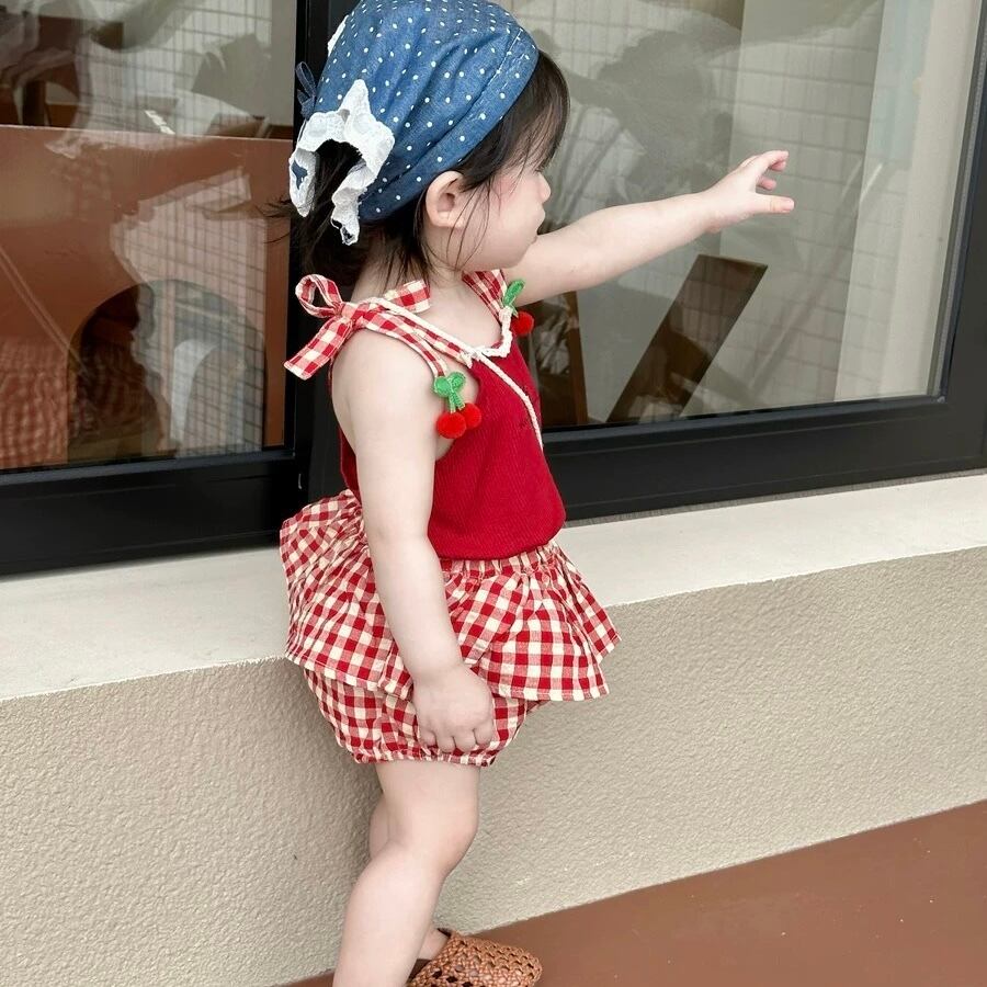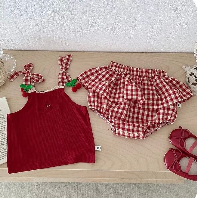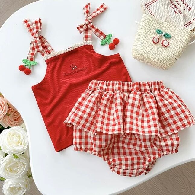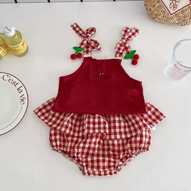 ギンガムチェリーキャミ+パンツセット