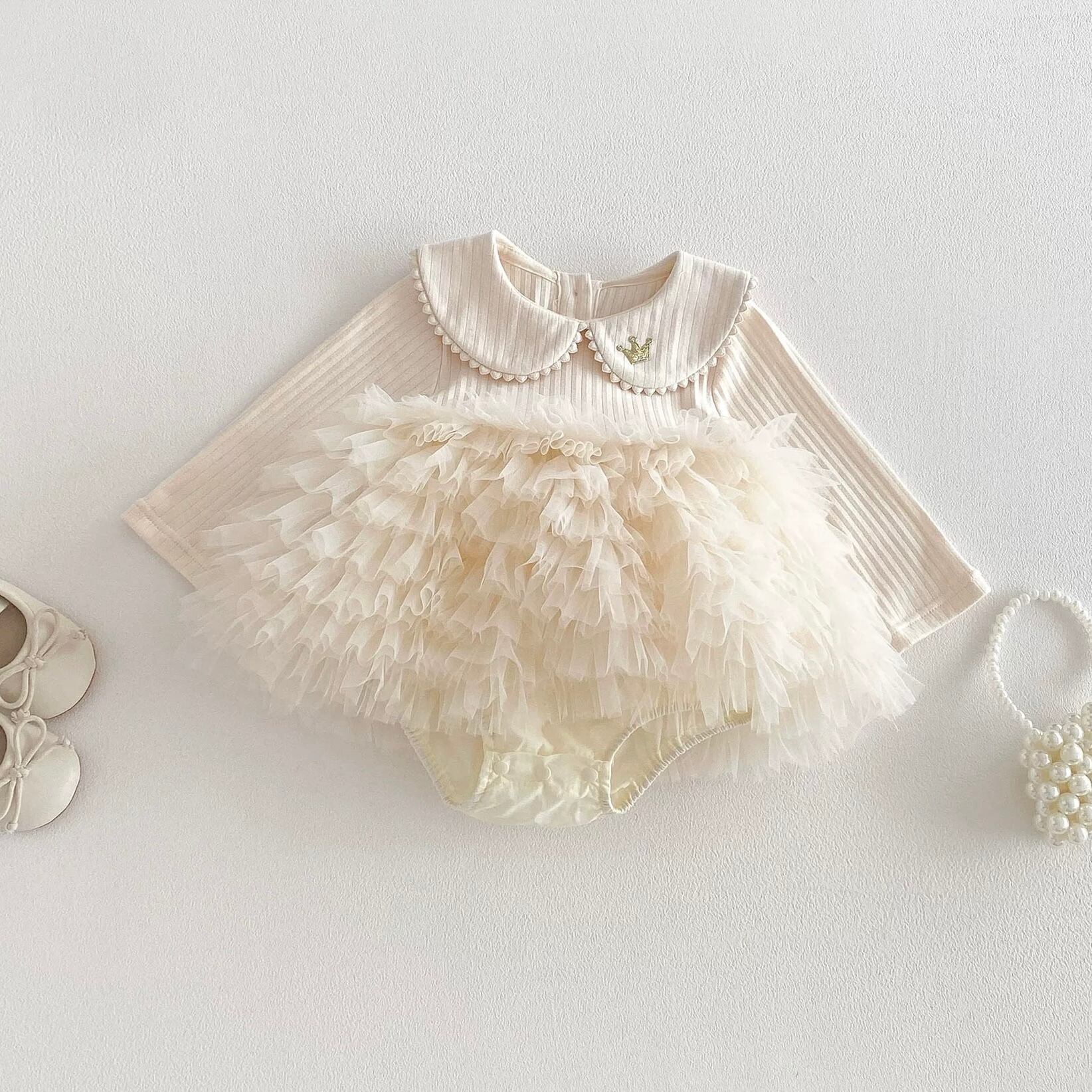 丸襟ボリュームフリルドレス