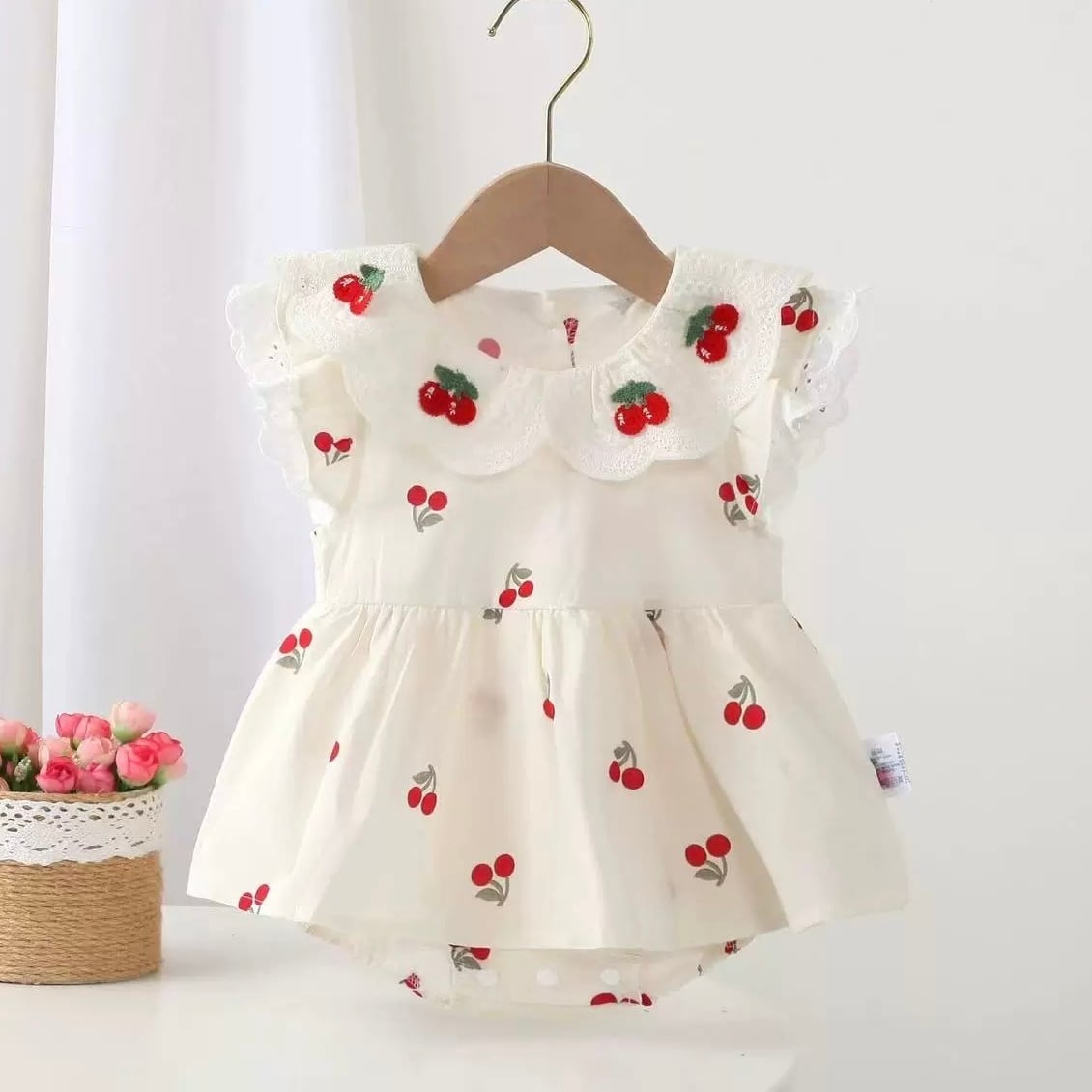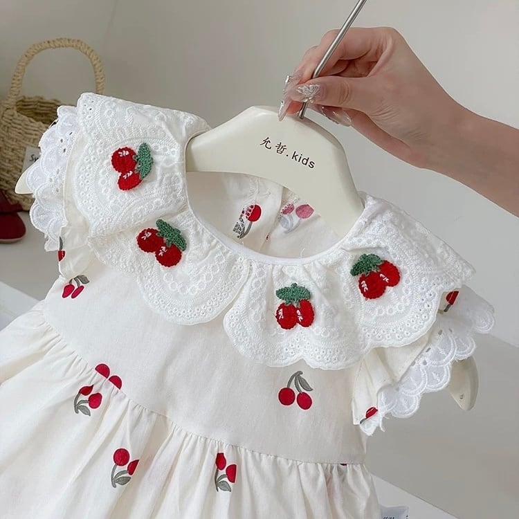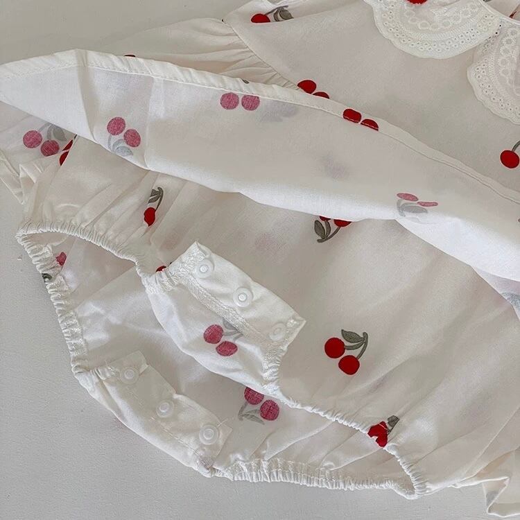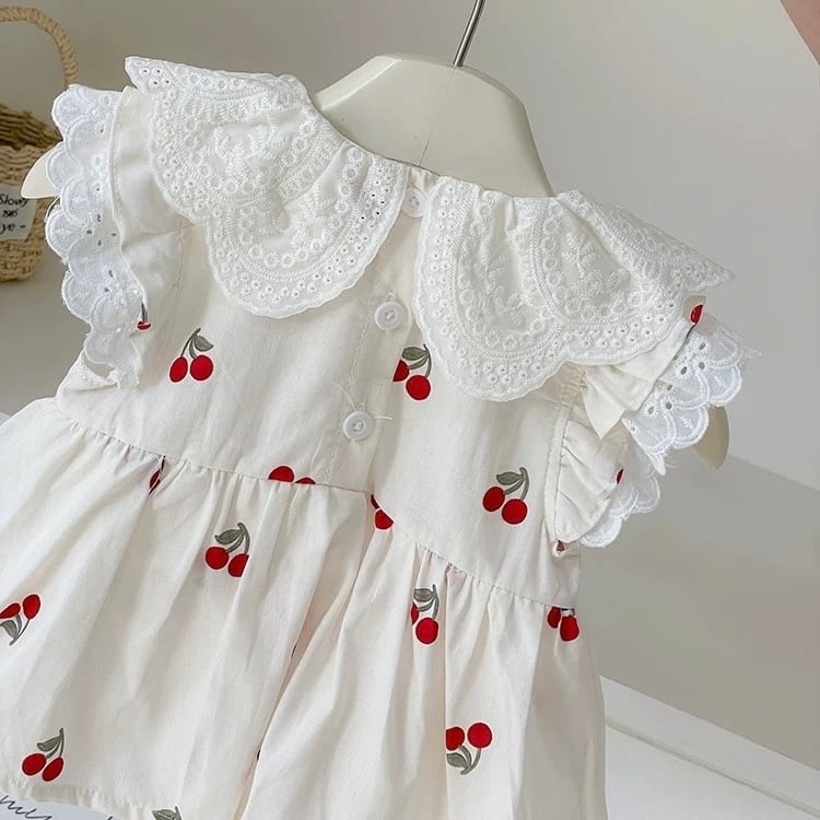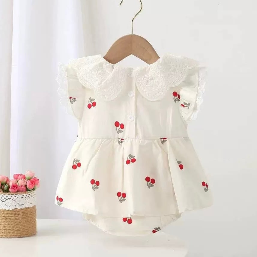 フリルカラーチェリードレスロンパース