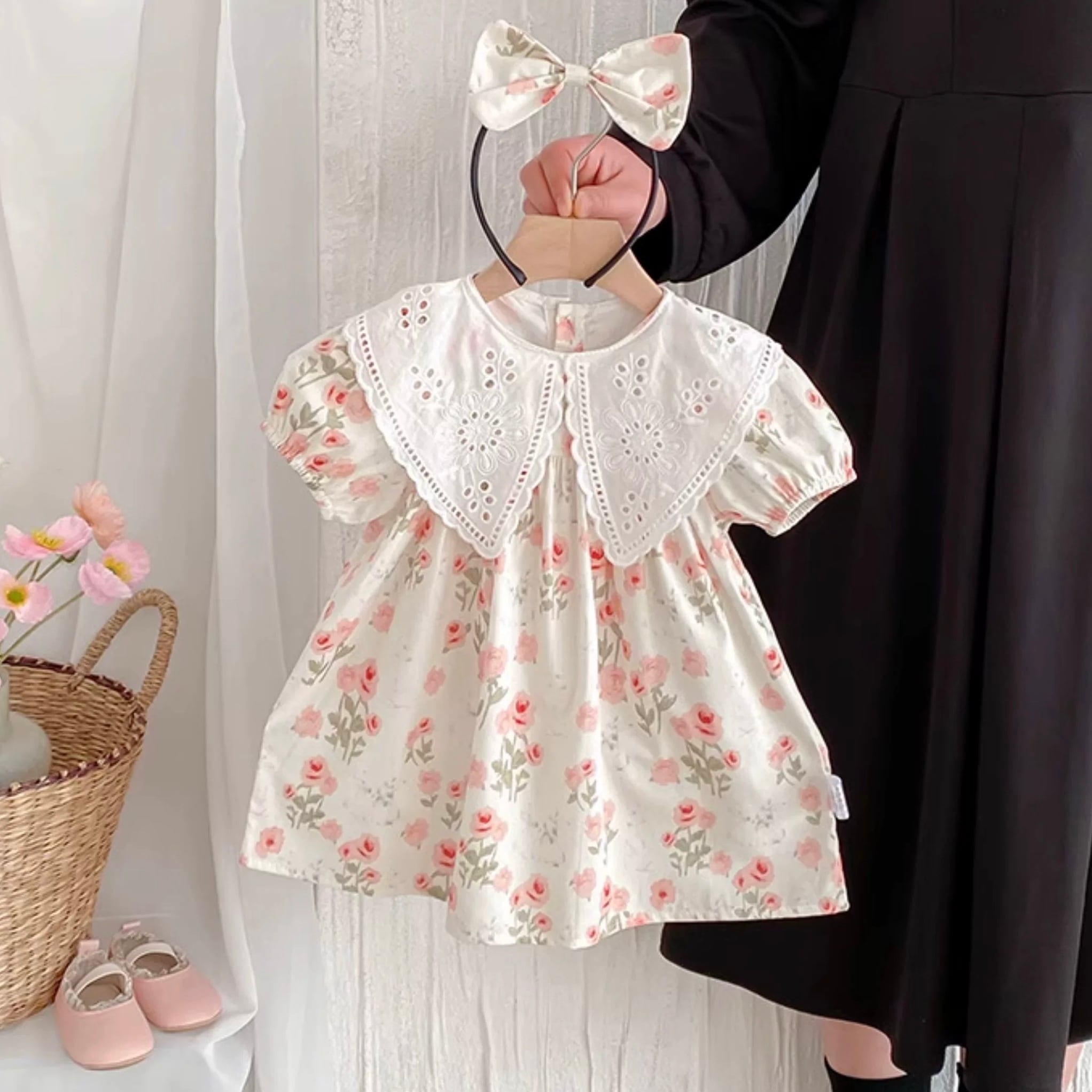 ビッグ襟花柄ワンピース