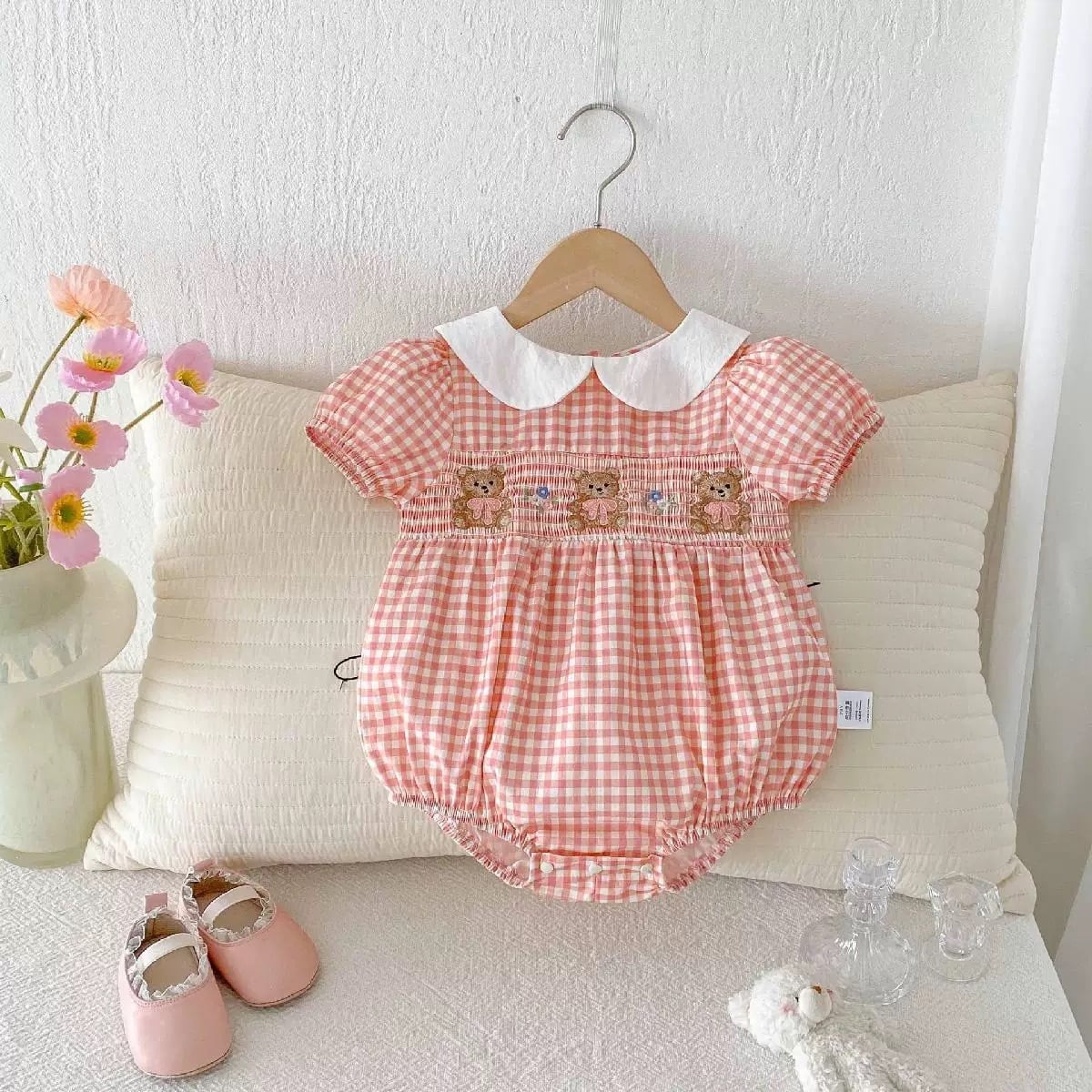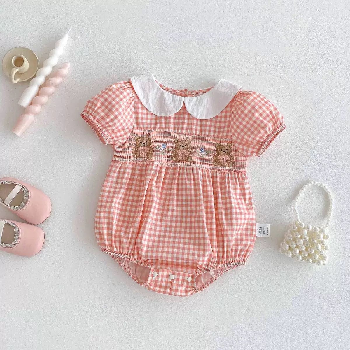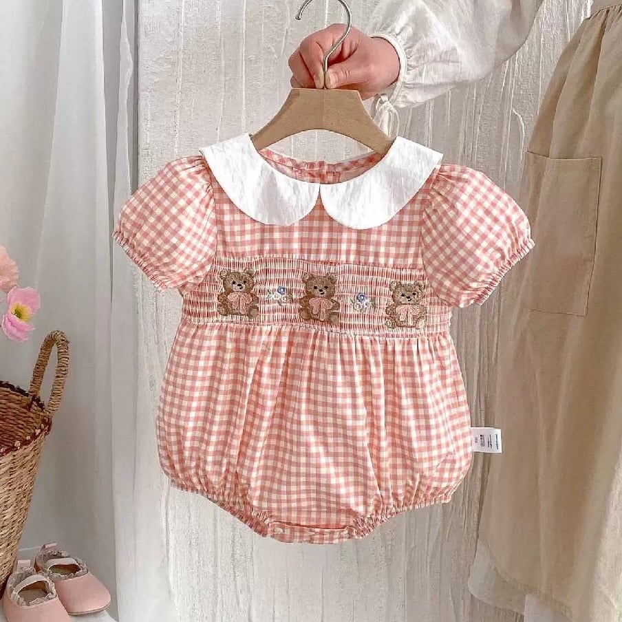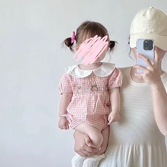 くまちゃん×ギンガムチェックロンパース