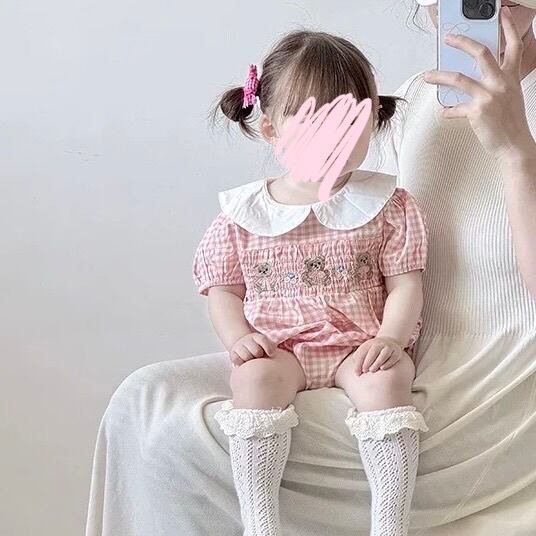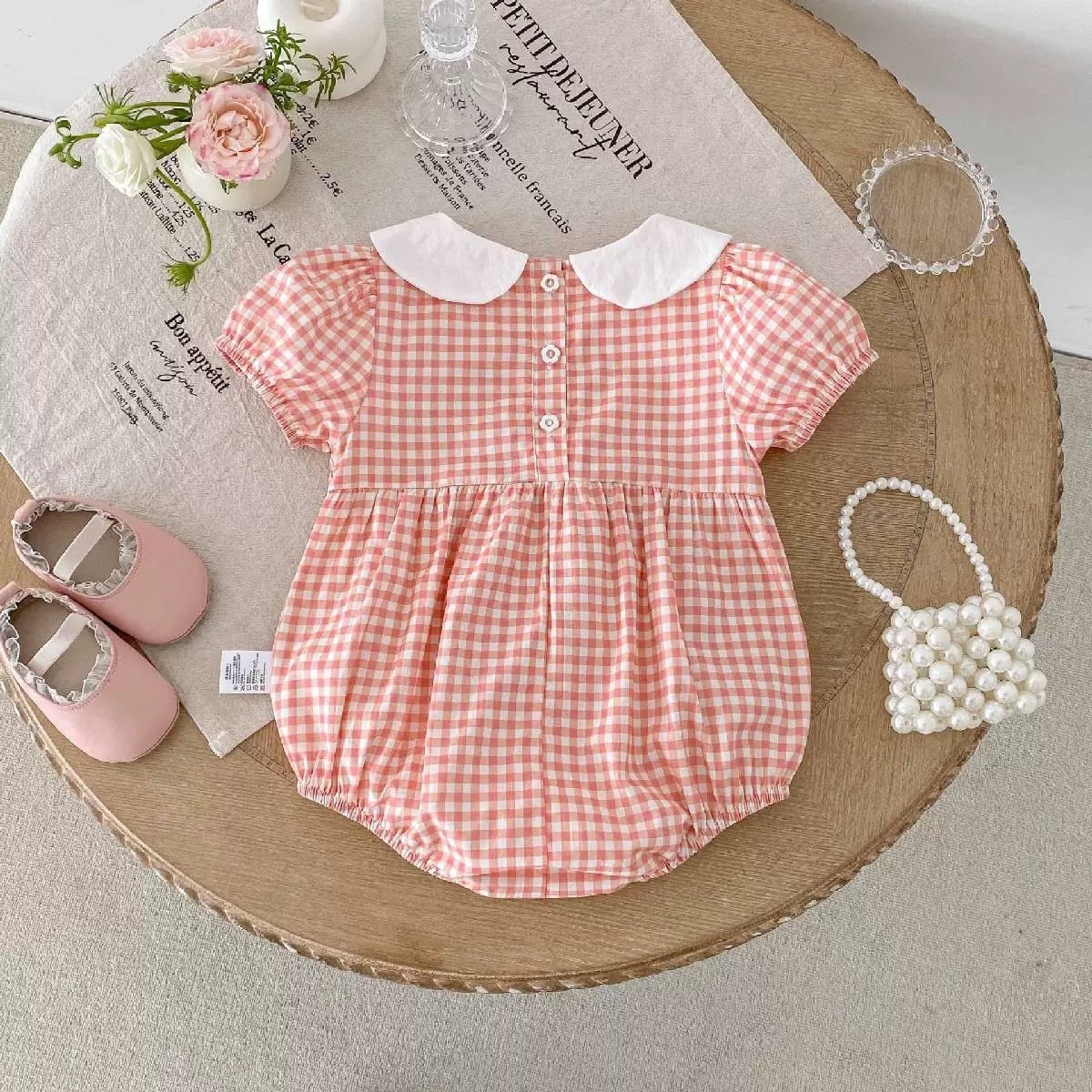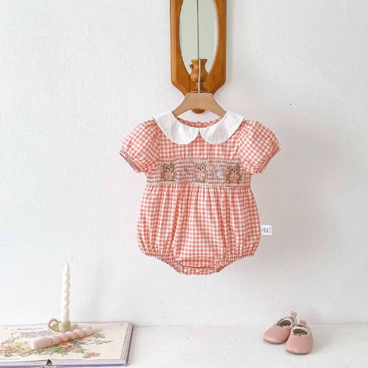 くまちゃん×ギンガムチェックロンパース