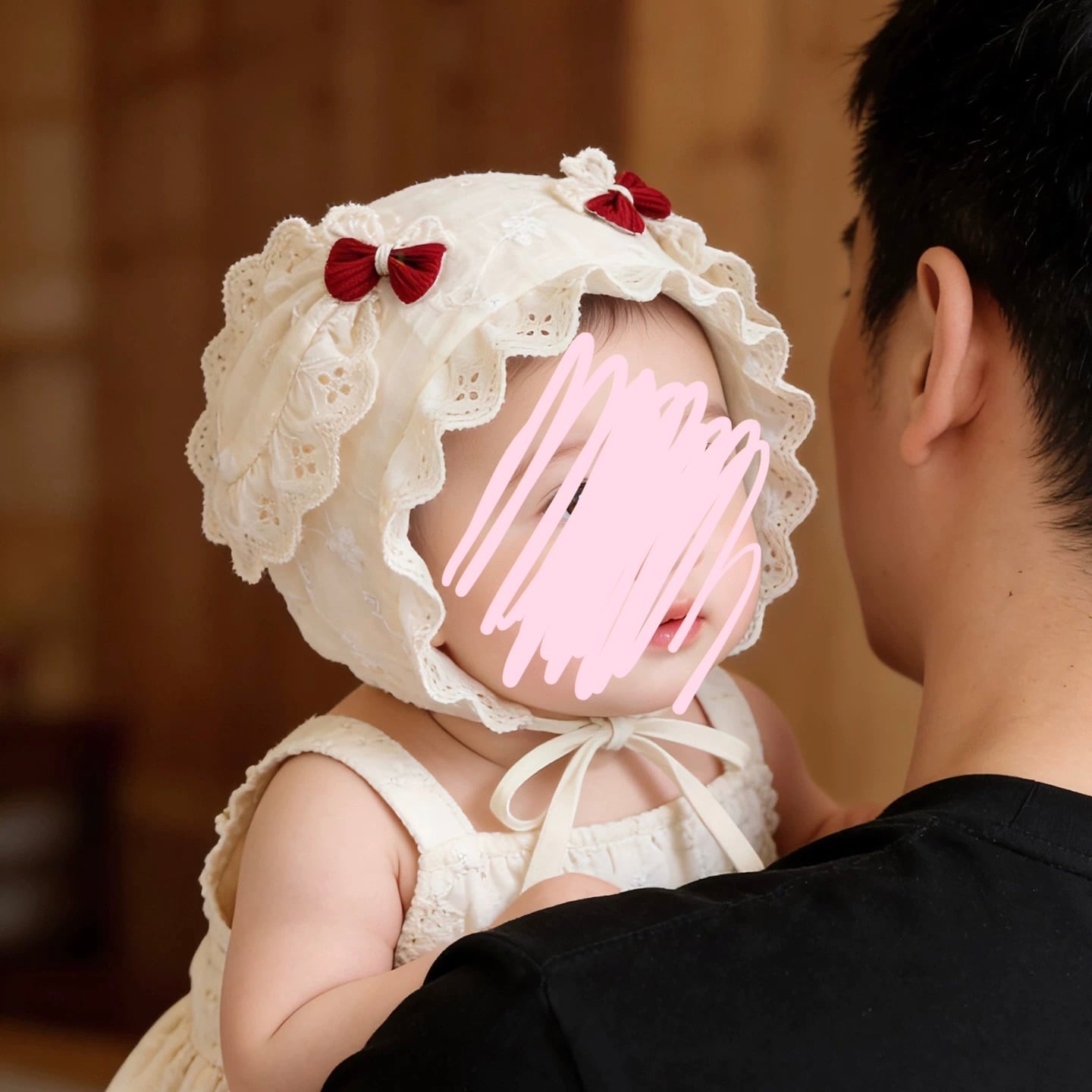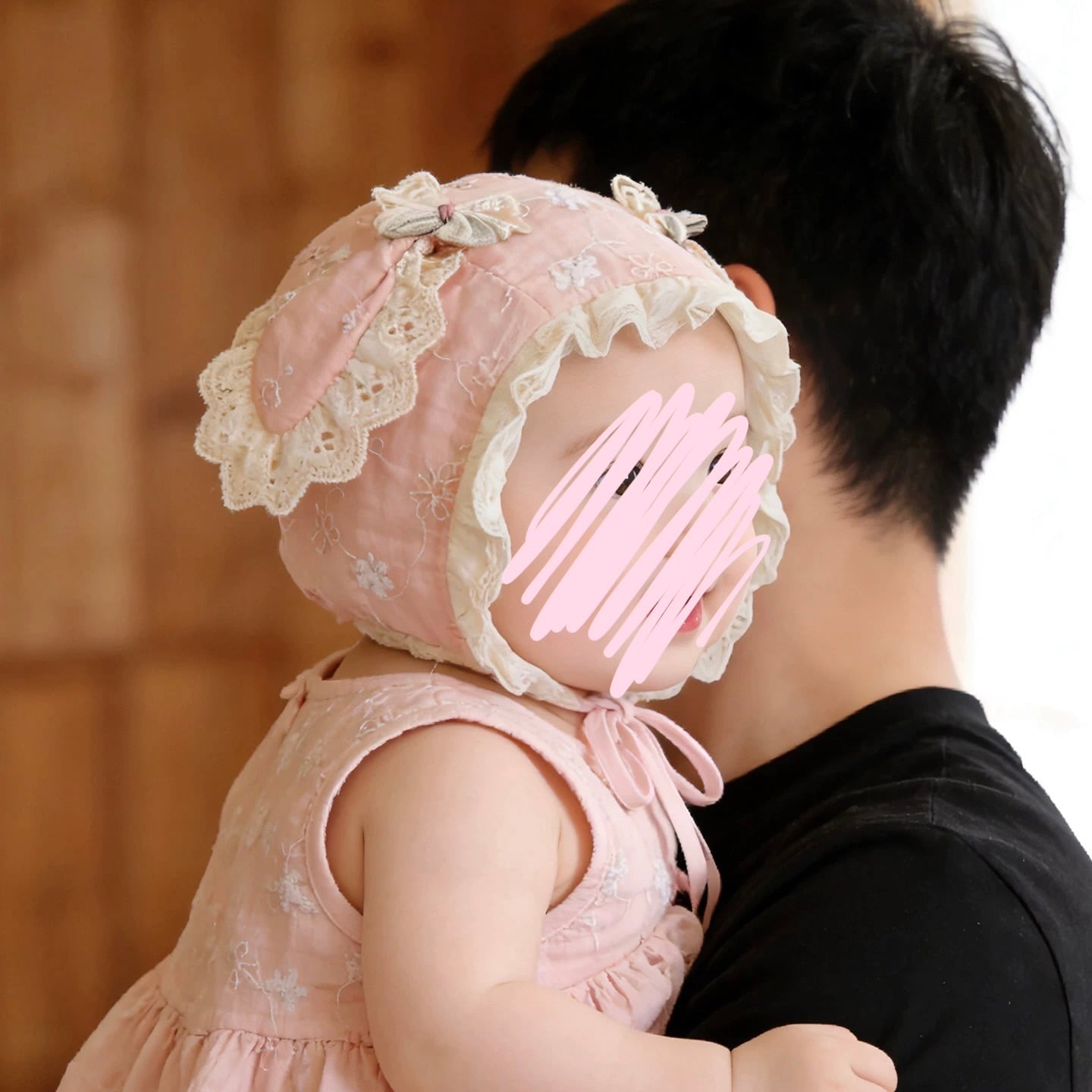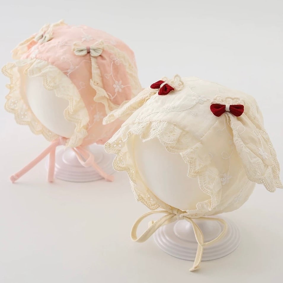 【2color】耳付きコットンレースボンネット
