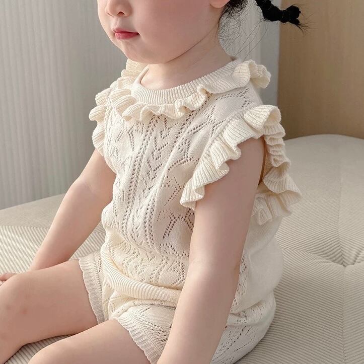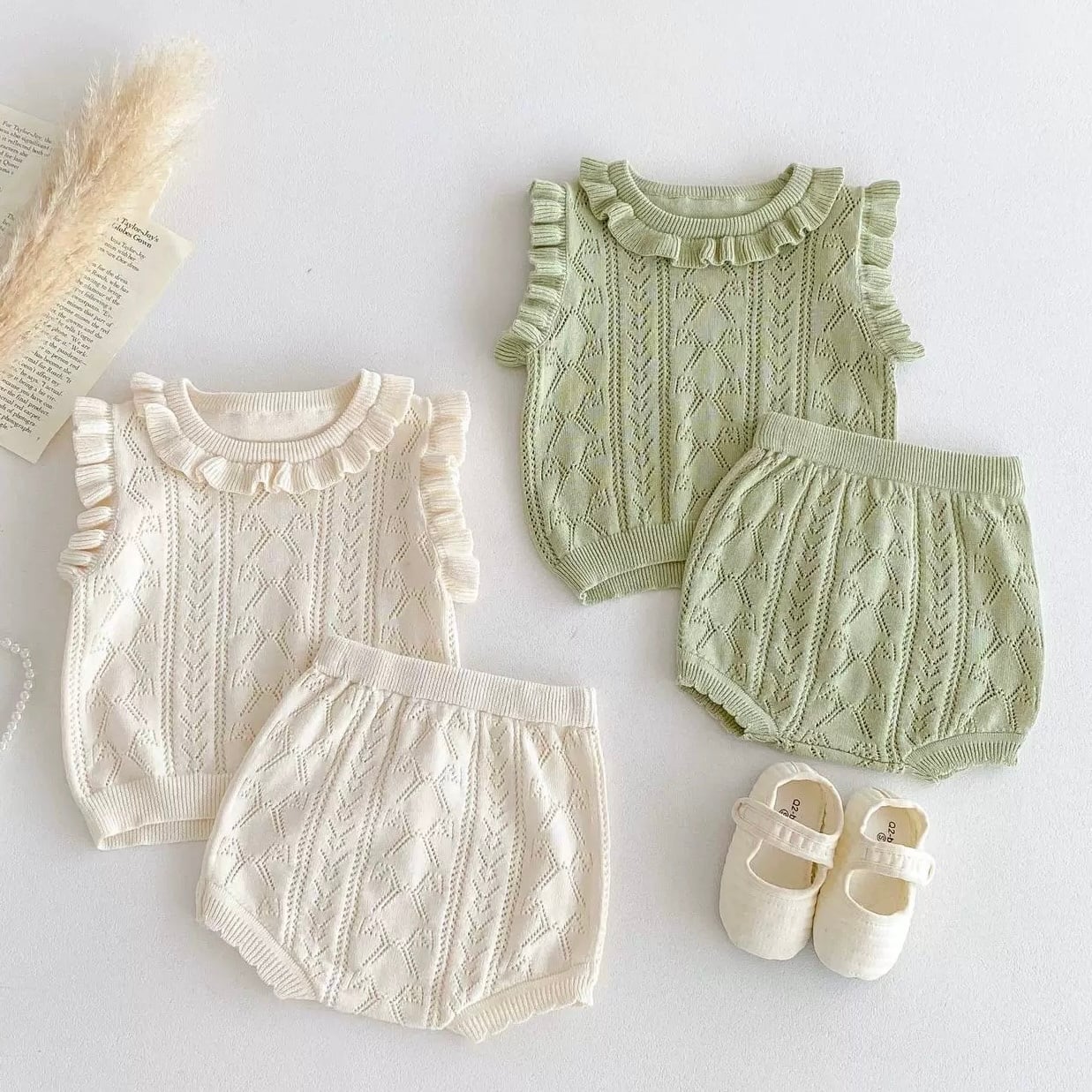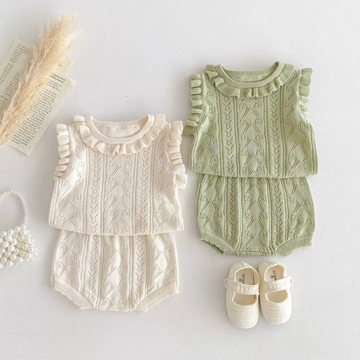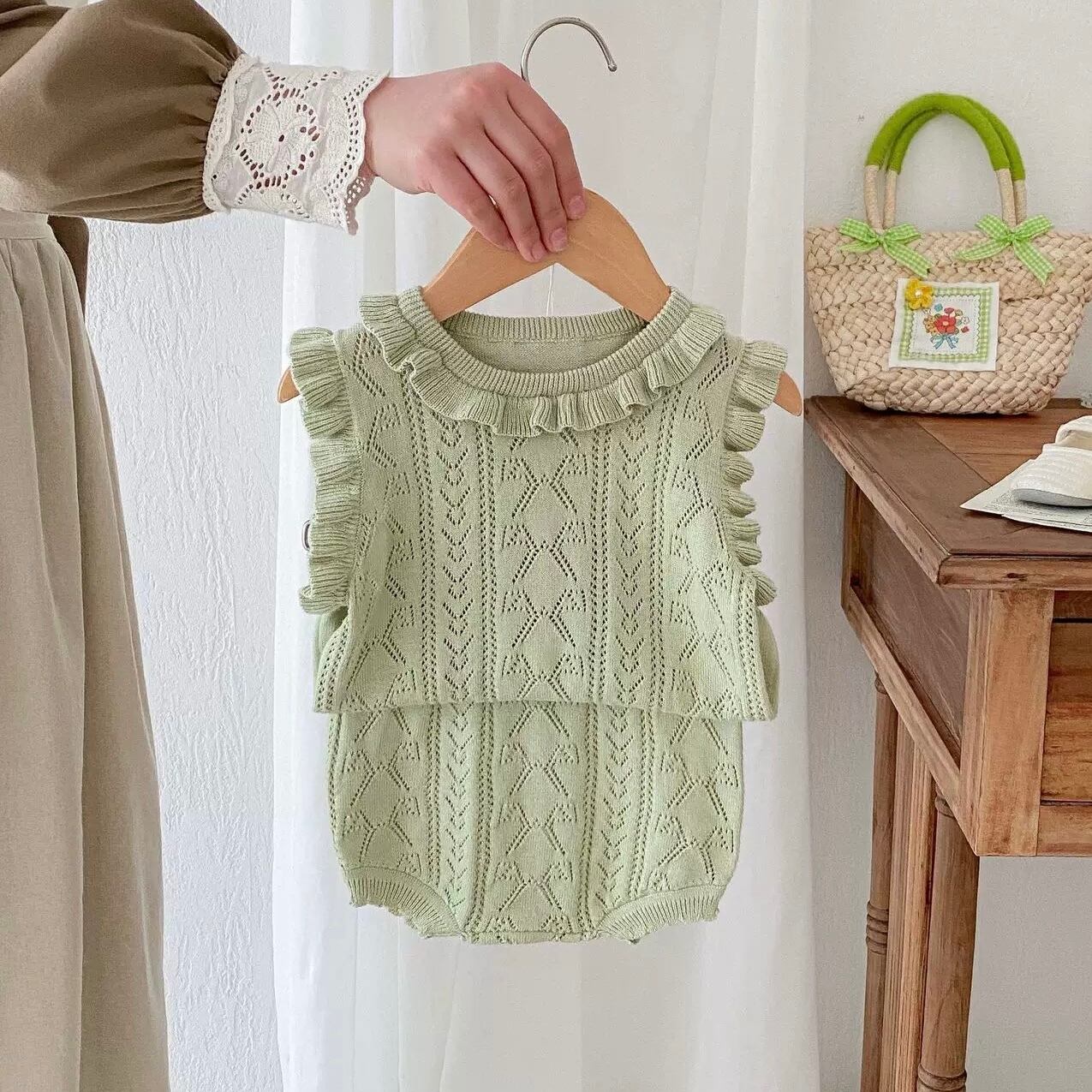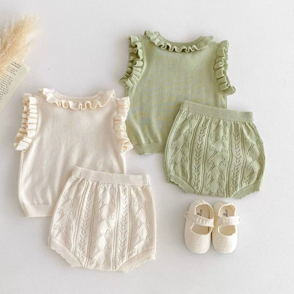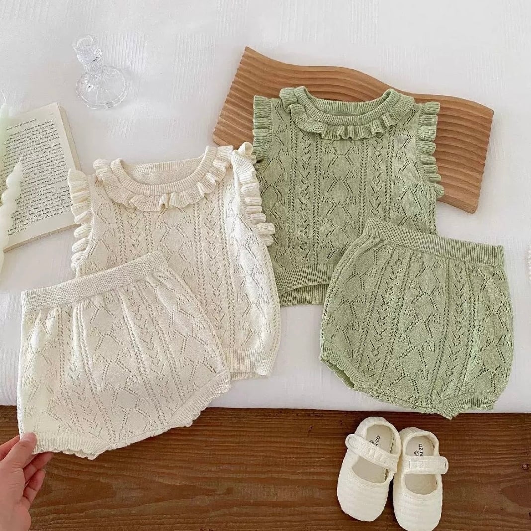 【2color】袖フリルニットブルマセット