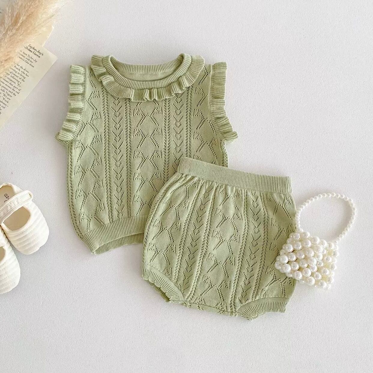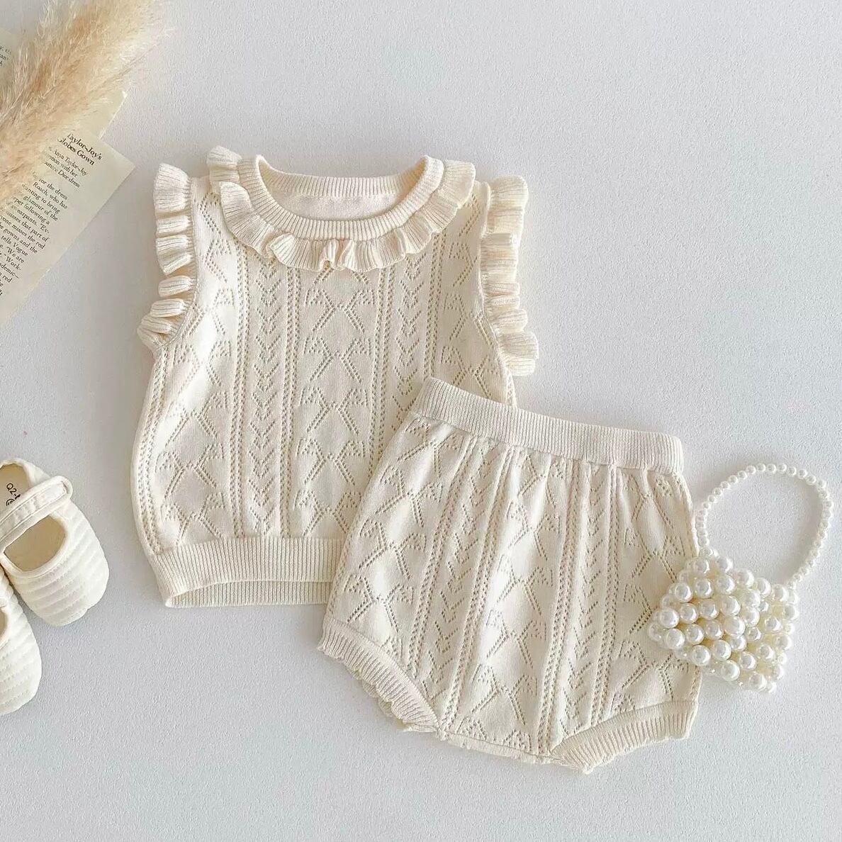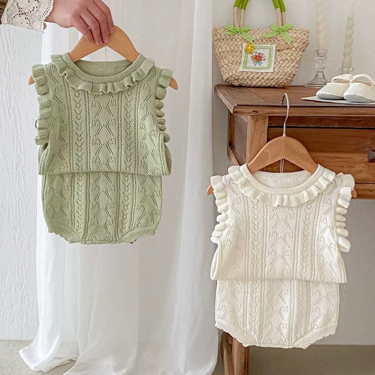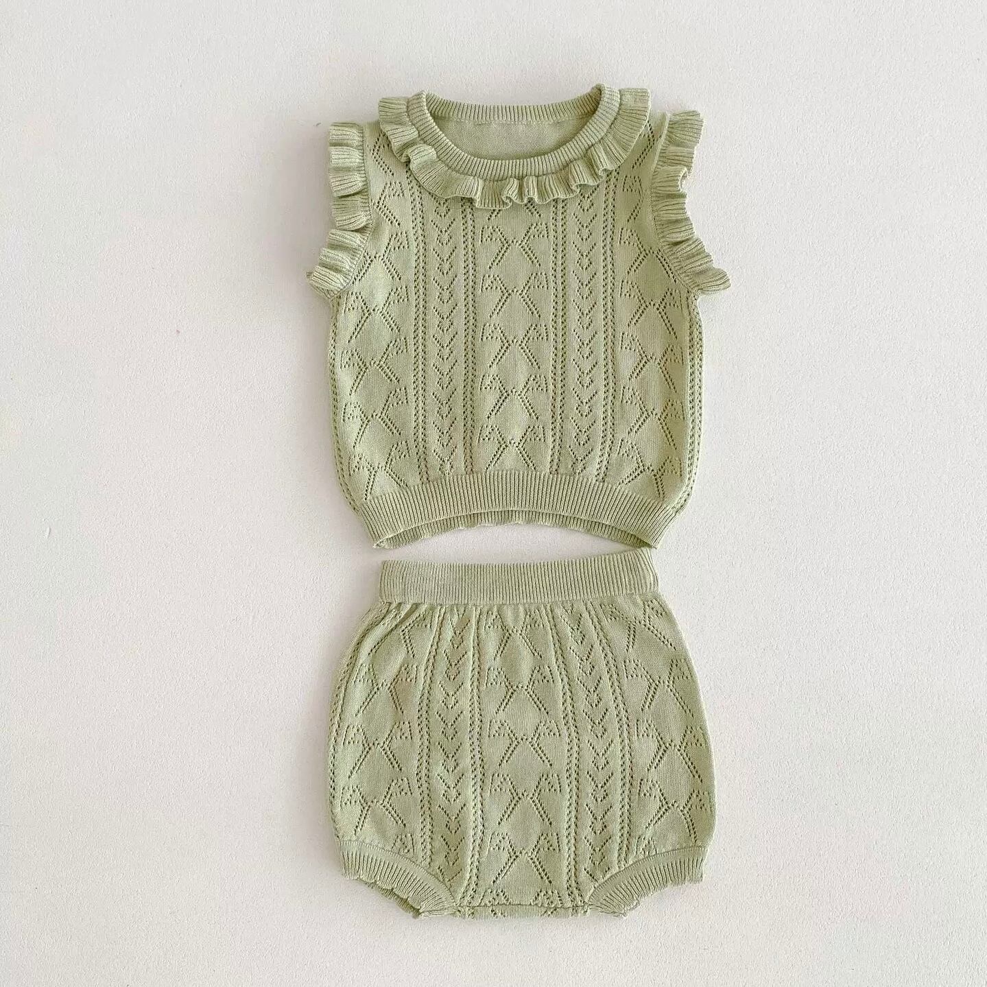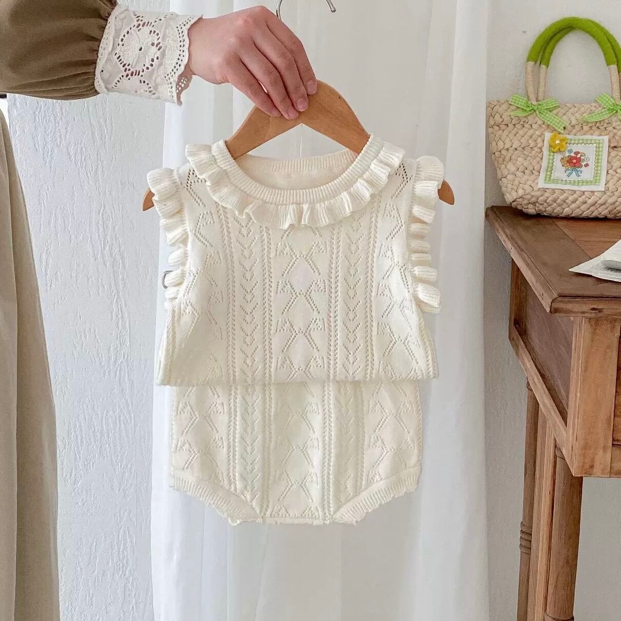 【2color】袖フリルニットブルマセット